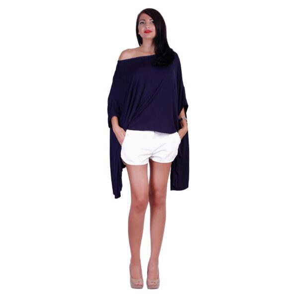 Bluza din bumbac si elastan, disponibila pe alb, galben si bleumarin. Drapajul lejer, umarul gol si manecile trei sferturi, de tip fluture, constituie baza unui croi lejer, perfect pentru zile calduroase de vara. Va recomandam sa incercati acest produs in combinatie cu o pereche de pantaloni scurti si pantofi cu toc inalt.