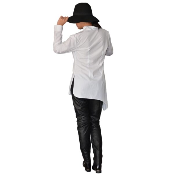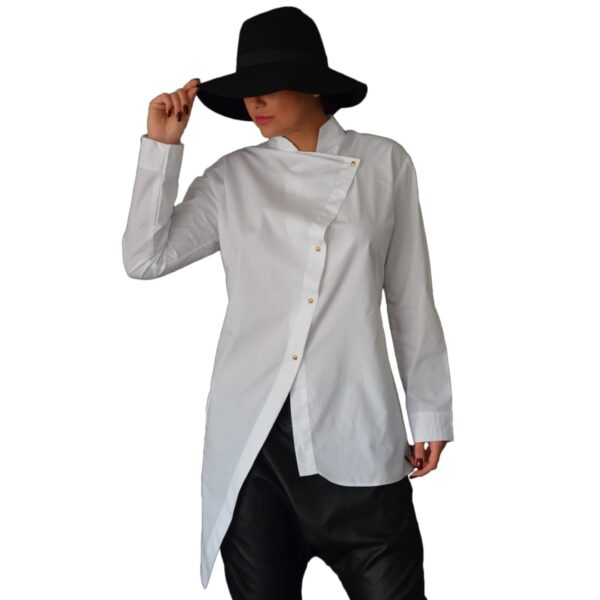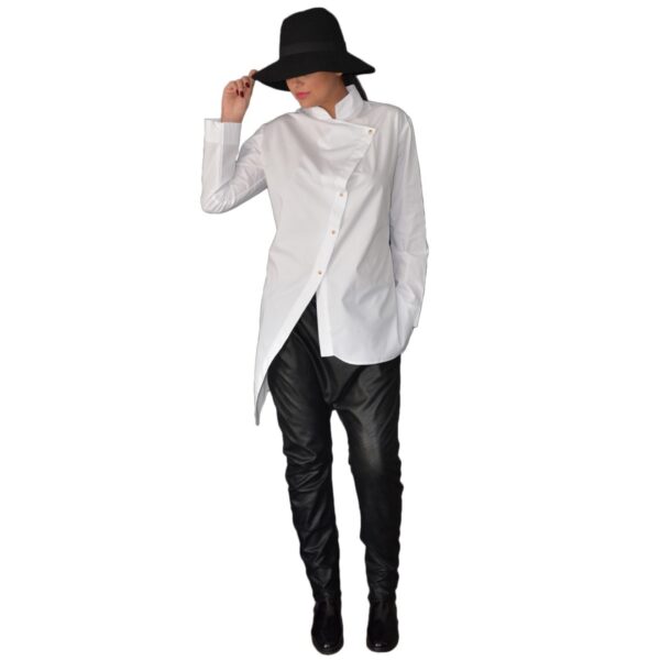 Camasa moderna, feminina, usor de asortat si accesorizat la aproape orice tinuta. Camasa are maneci lungi si se inchide cu nasturi metalici intr-o parte. Cauta eleganta si distinctia pe care ti-o ofera simpla purtare a unei camasi. La office sau o iesire de-o seara cu prietenii, o camasa bine asortata te ajuta sa obtii un efect fashion fara prea mare efort.