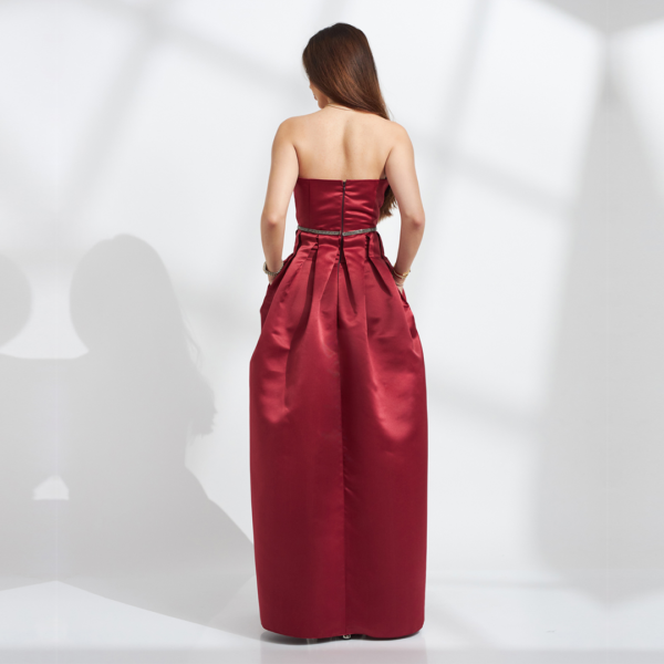 Rochie lungă cu spatele gol, accesorizată cu un detaliu simplu, dar de efect în talie. Comandă și ajunge la tine în 2-3 zile lucrătoare!