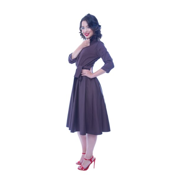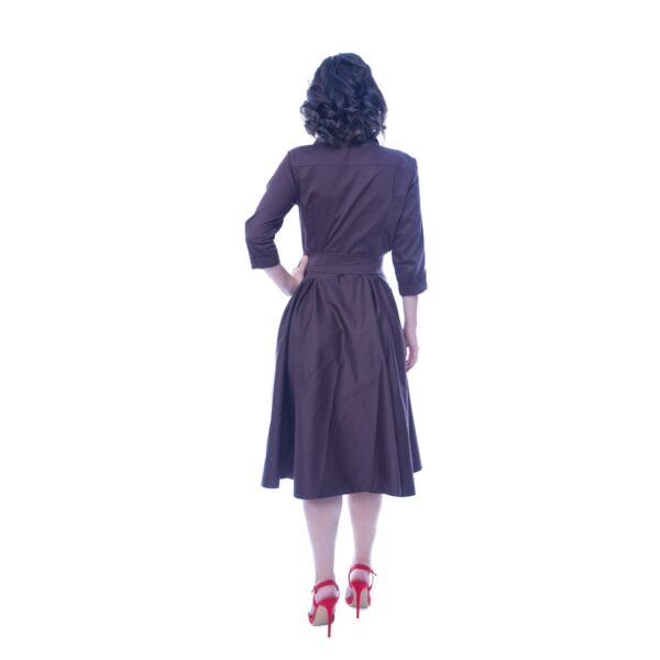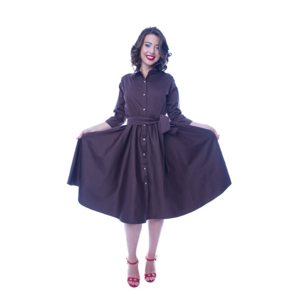 Rochie midi, tip camasa, accesorizata la bust si la mansete cu capse, prevazuta cu buzunare laterale. Fusta rochiei este clos, croiul lejer si se leaga in talie cu un cordon. Rochia este disponibila in masurile standard XS – XL, dar pentru acelasi pret o poti comanda si selectand optiunea ” Pe masurile tale ”. Indiferent de alegerea Dvs. noi oricum va sunam inainte de livrare pentru a parcurge impreuna comanda si a ne asigura ca primiti rochia perfecta!