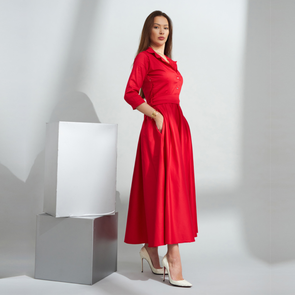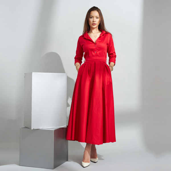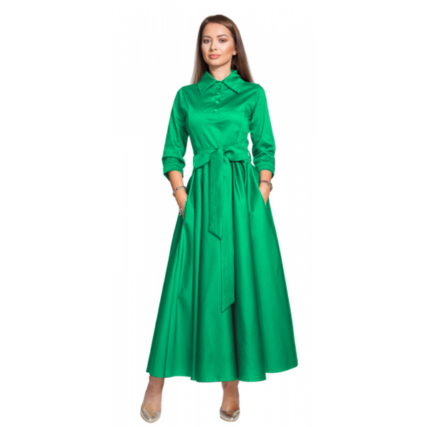 O rochie superba, tip camasa, cu cordon, si buzunare, completeaza tinuta perfecta a oricarei femei.